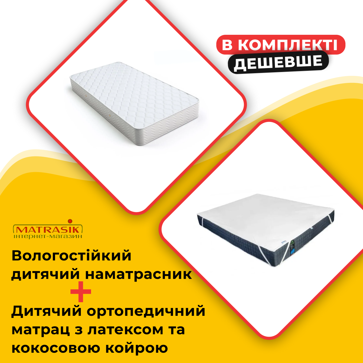 Дитячий ортопедичний матрац EuroSleep Kiddy Cocos-Latex 3+3 60x120 + Вологостійкий дитячий наматрацник Water